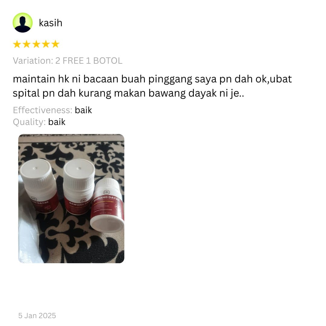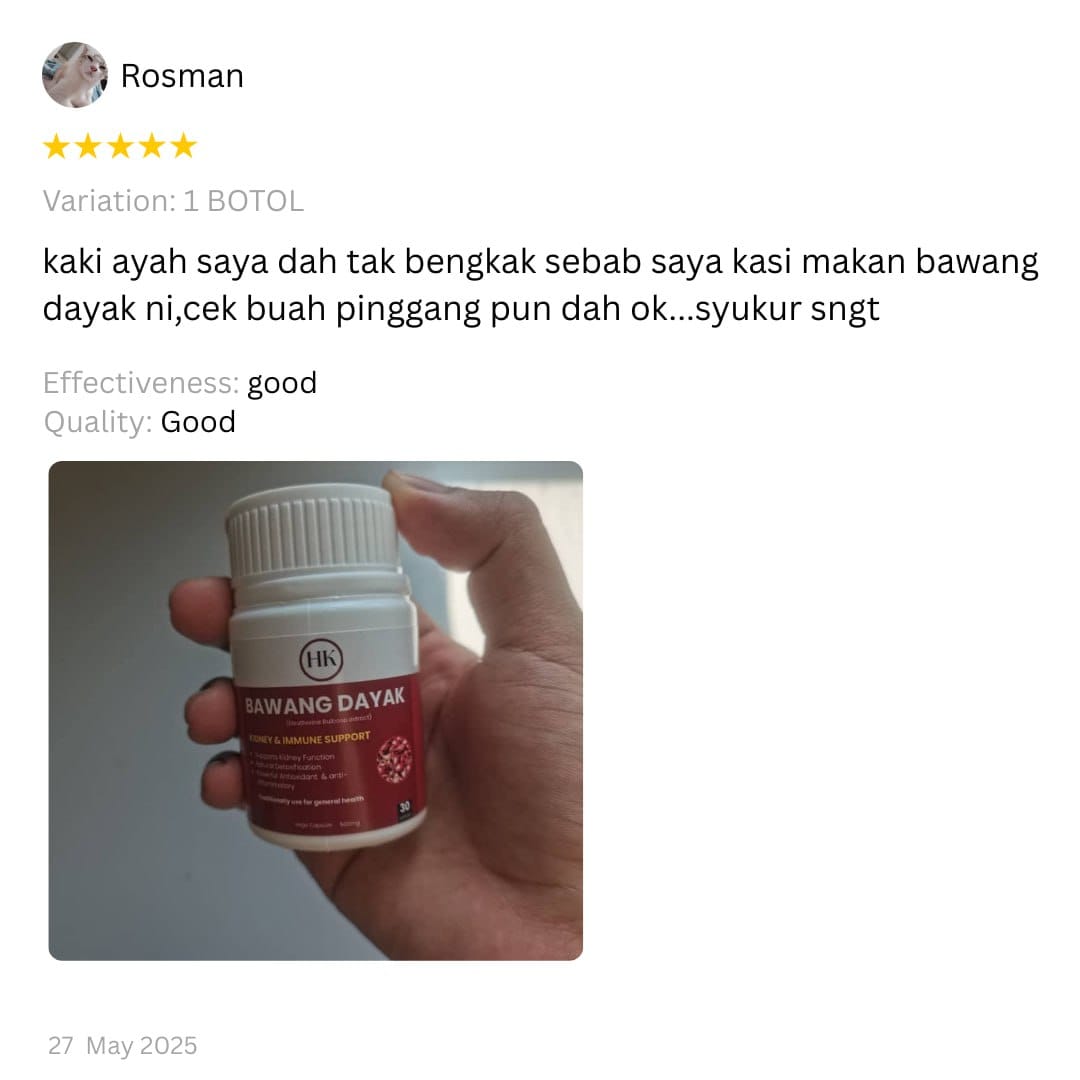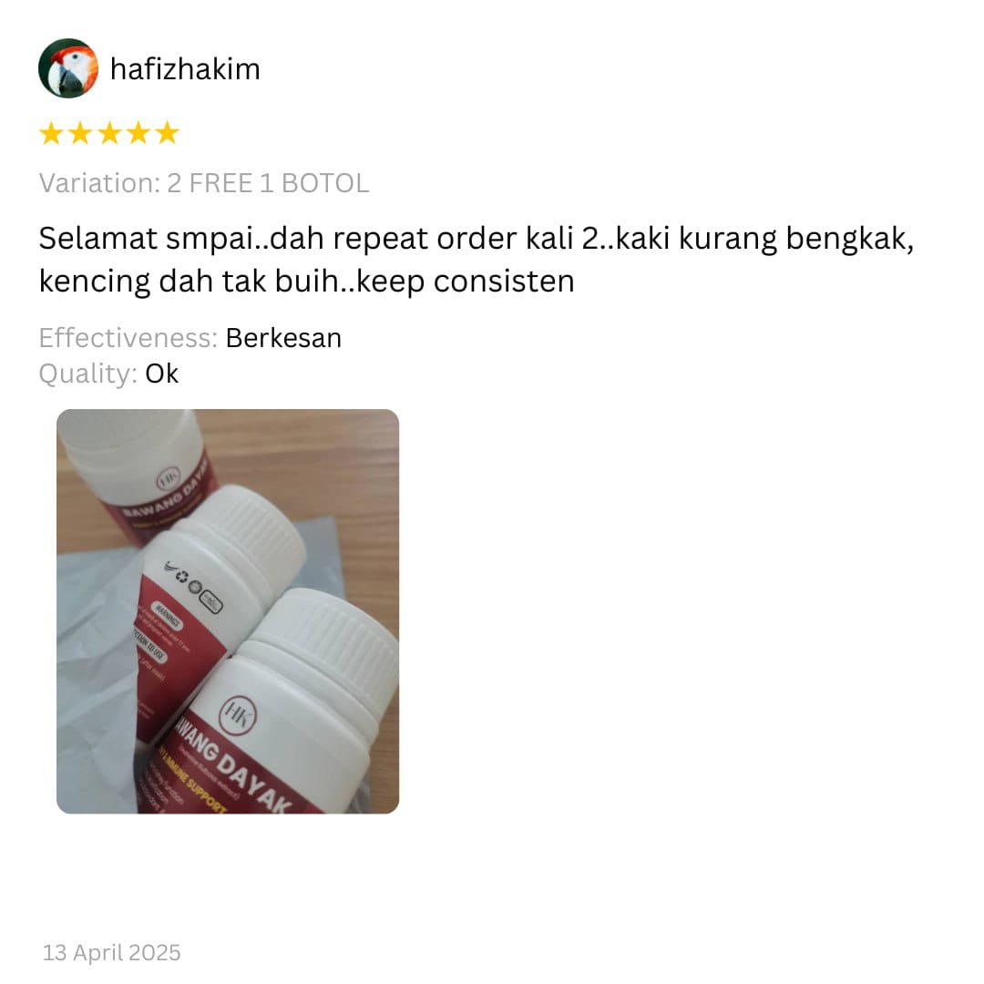 Sebab tu ramai amalkan herba antioksidan seperti Bawang Dayak untuk sokong keseimbangan tubuh.”